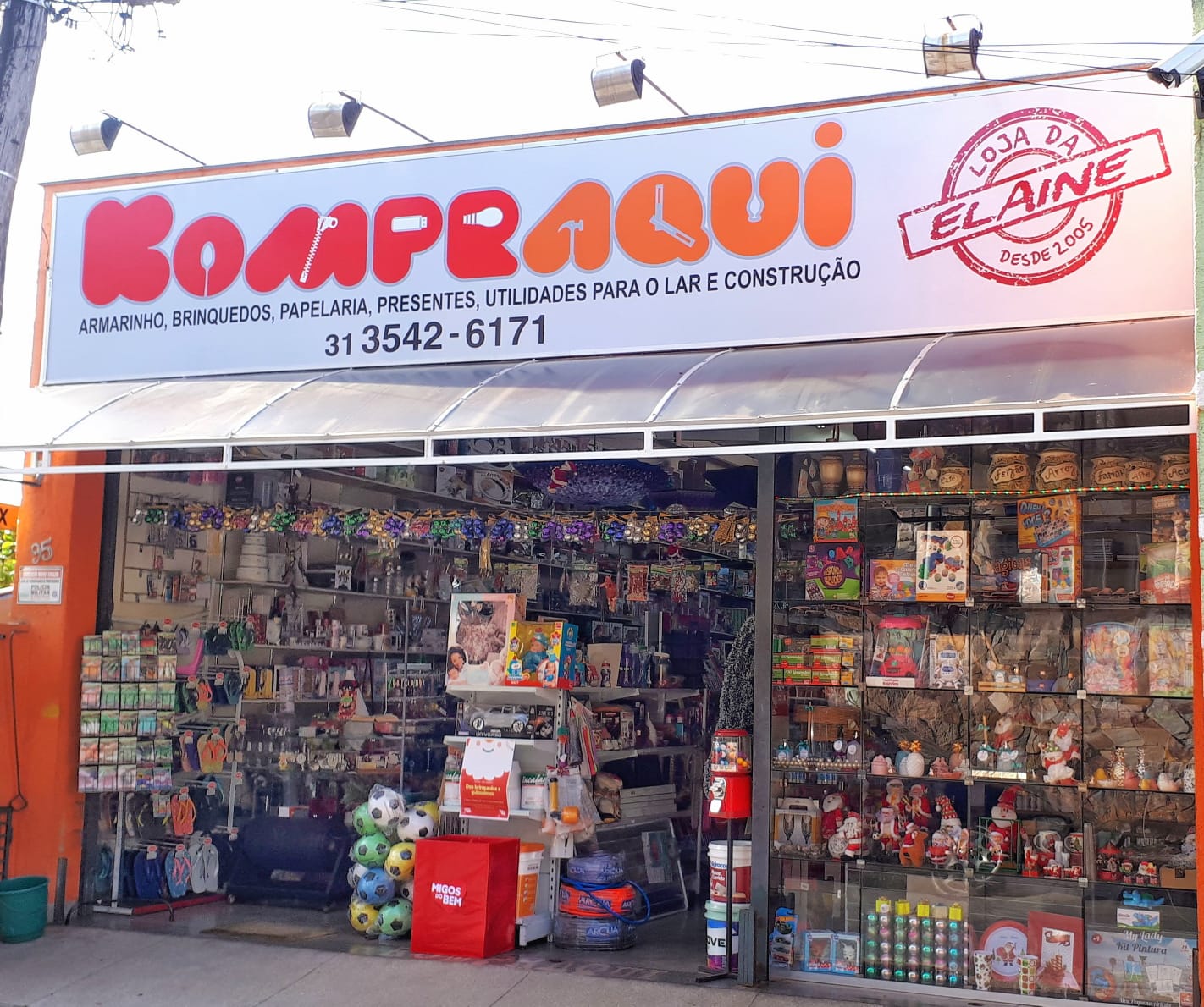 Atualmente, o Kompraqui a Loja da Elaine, em sua sede própria, oferece um atendimento excepcional, focado em atender todas as necessidades dos nossos clientes de forma ágil, com qualidade e a preços justos. Nosso mix de produtos abrange armarinho, brinquedos, papelaria, presentes, utilidades para o lar e construção.