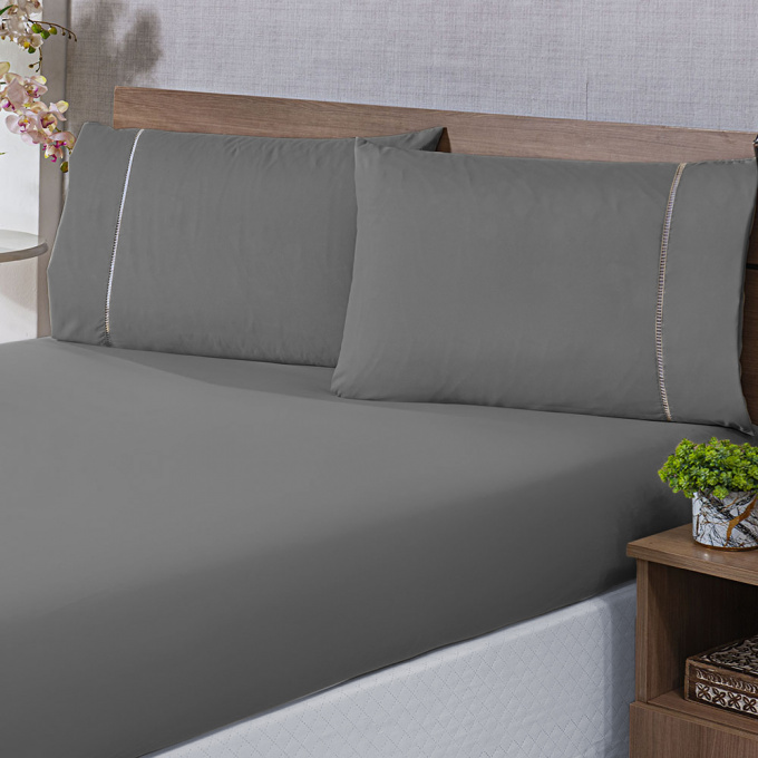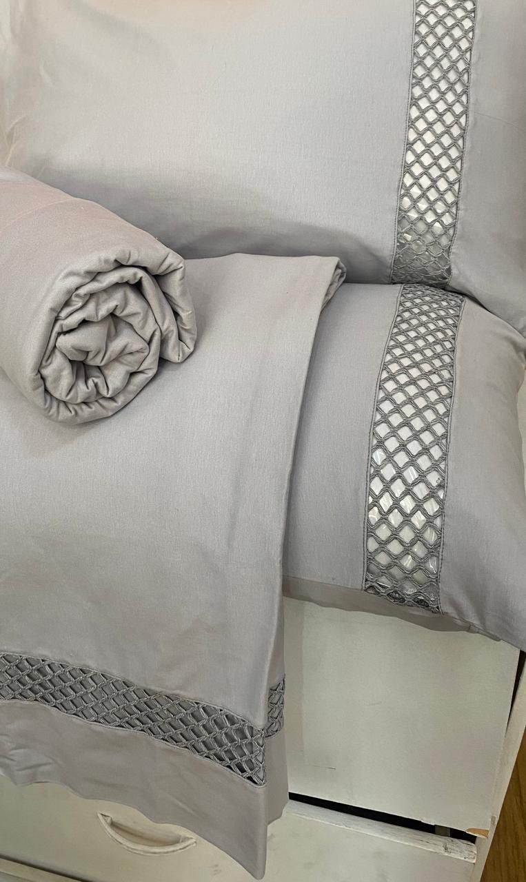 O CONJUNTO CONTÉM LENÇOL COM ELÁSTICO, E FRONHA COM PONTO PALITO