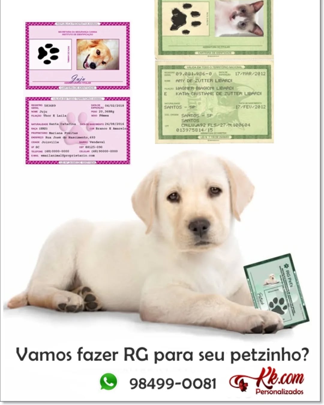 RG, CERTIDÃO DE CÃES,GATOS E ANIMAIS DE ESTIMAÇÃO EM GERAL...