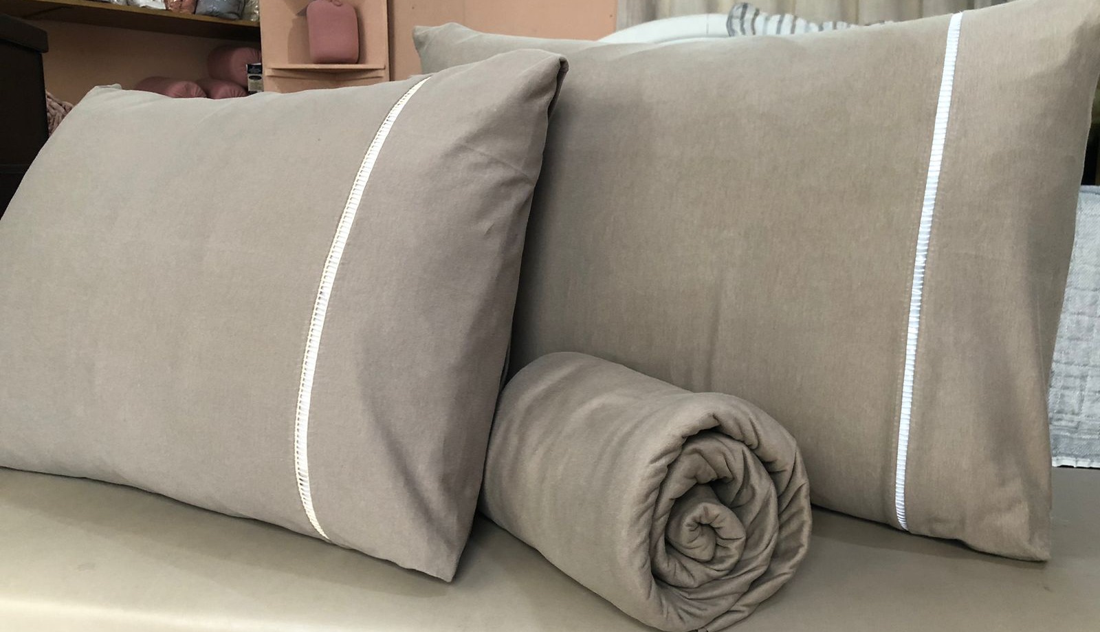 O CONJUNTO CONTÉM LENÇOL COM ELÁSTICO, E FRONHA COM PONTO PALITO