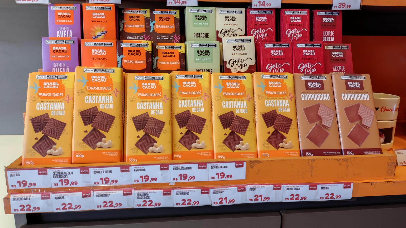 - E linhas especiais, como chocolates com maior graduação de cacau ou opções sem adição de açúcar.