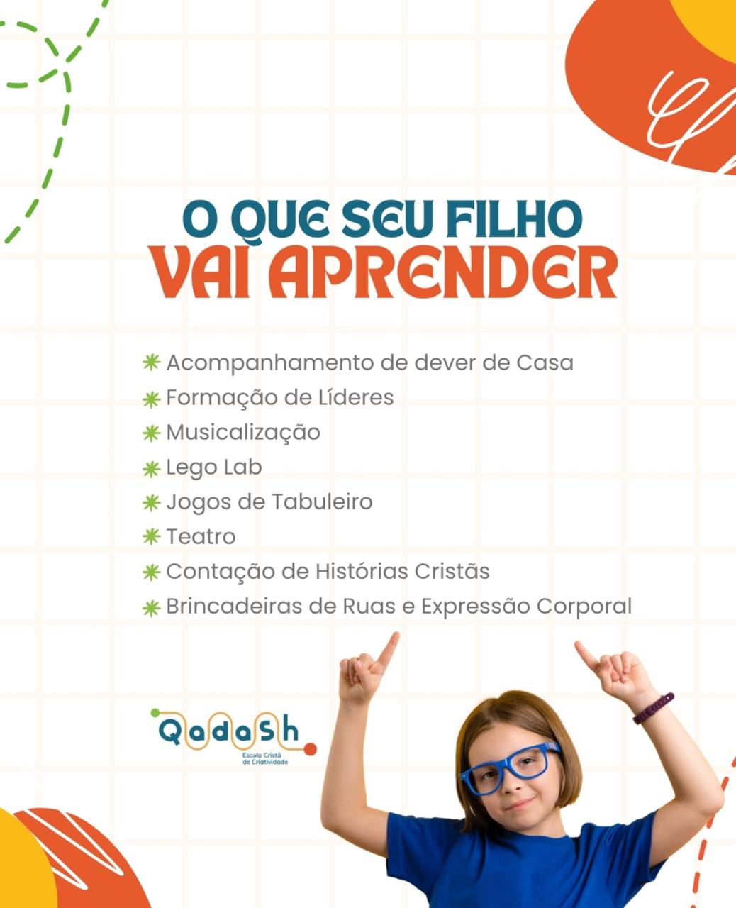 A QADASH é uma escola cristã de criatividade, dedicada a oferecer atividades extracurriculares que promovem o desenvolvimento integral das crianças em um ambiente acolhedor, seguro e divertido.