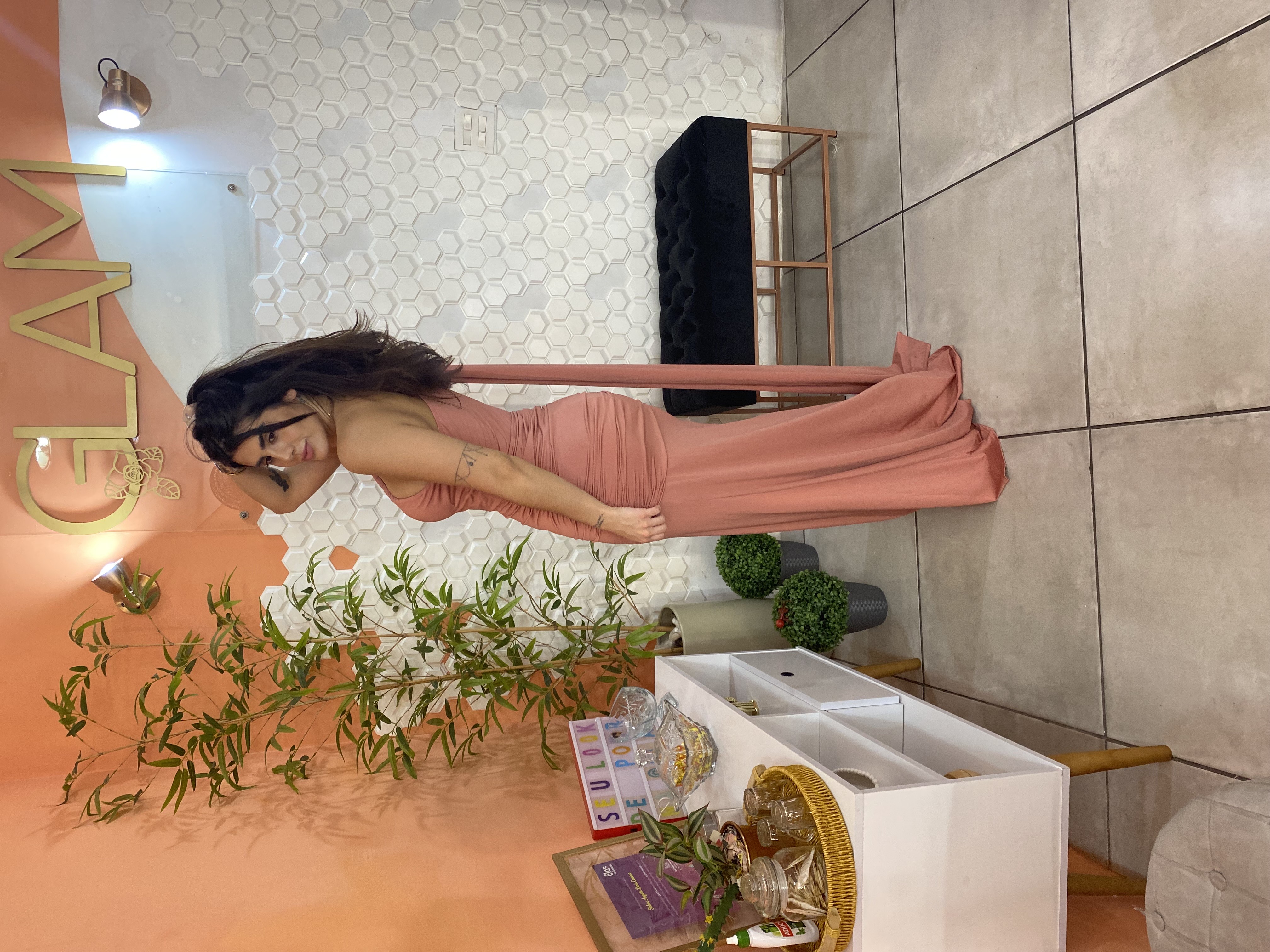 Um clássico contemporâneo para mulheres que exigem presença. Feito em malha premium de toque aveludado, o Vestido Sculpt Glam abraça as curvas com conforto absoluto, graças ao caimento estruturado que modela sem apertar. O tom terroso sofisticado ilumina qualquer pele, enquanto a amarração longa nas costas permite ajuste perfeito — ideal para quem busca segurança, beleza e liberdade em uma única peça.